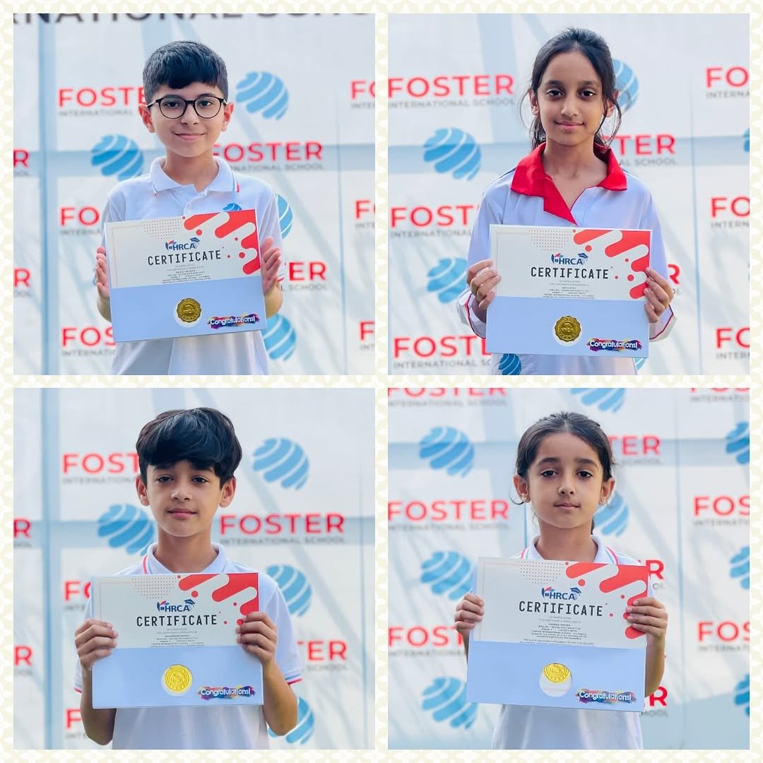 Learners of Grades 1 to 8 at Foster International proudly received certificates and medals for their outstanding achievements in inter school HRCA competition.