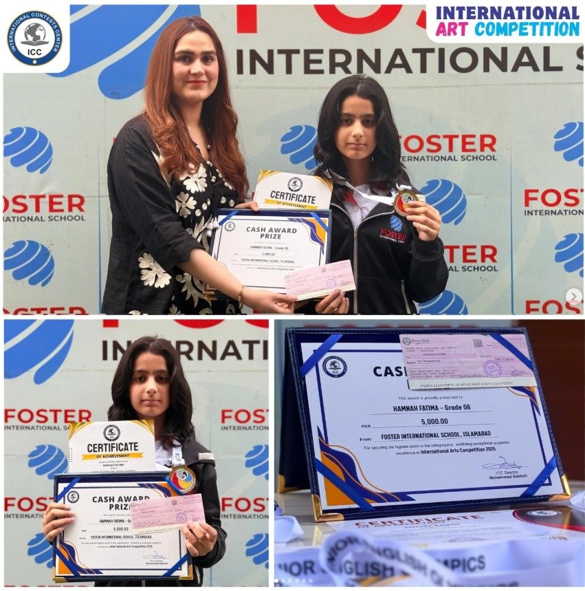 Foster International School hosted a soul-enriching Qirat & Naat Competition, where students beautifully recited verses from the Holy Quran, heartfelt duas, and melodious naats. Their powerful recitations filled the atmosphere with spirituality and devotion.