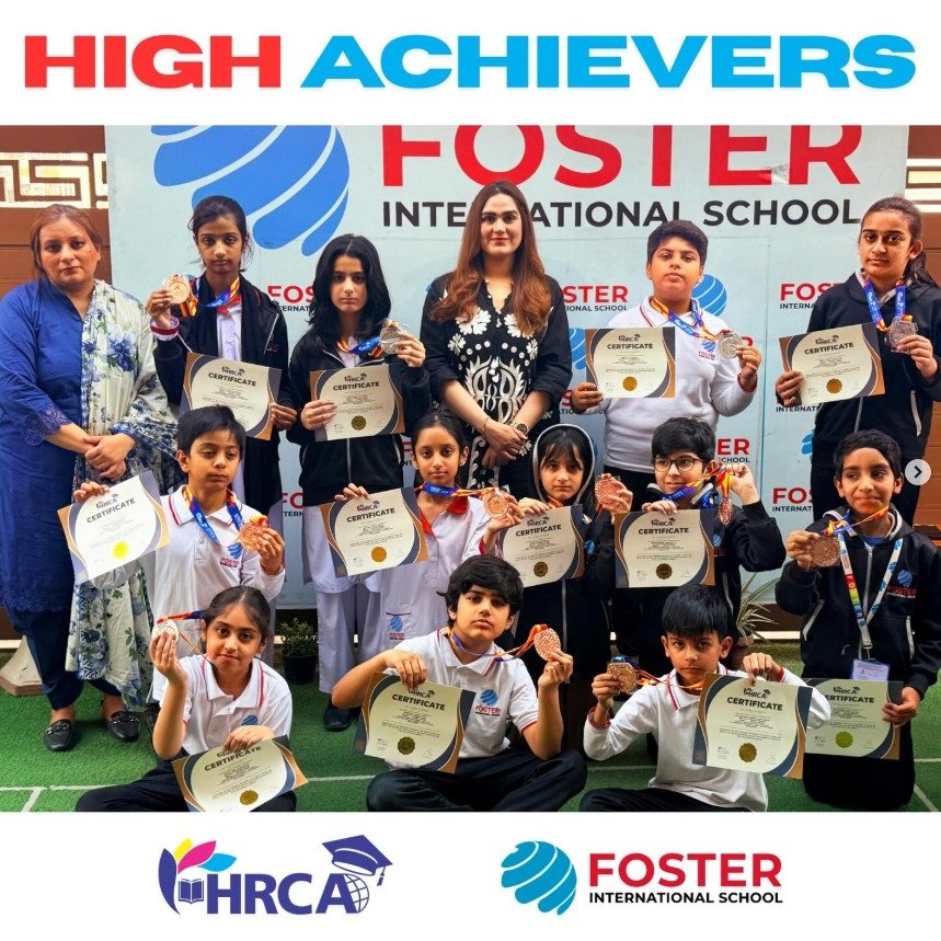 Learners of Grades 1 to 8 at Foster International proudly received certificates and medals for their outstanding achievements in inter school HRCA competition.